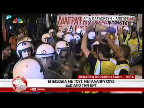 Επεισόδια με τους μεταλλωρύχους έξω από την ΕΡΤ