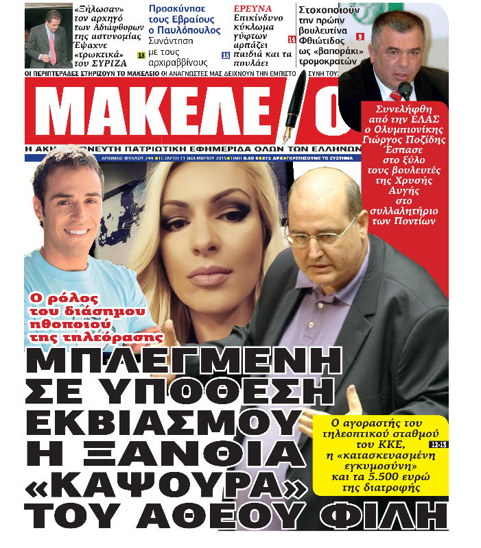 Μπλεγμένη σε υπόθεση εκβιασμού η ξανθιά “καψούρα” του άθεου Φίλη. Ο ρόλος του διάσημου ηθοποιού της τηλεόρασης. Η “κατασκευασμένη” εγκυμοσύνη, τα 5.500 ευρώ της διατροφής και ο αγοραστής του καναλιού του ΚΚΕ