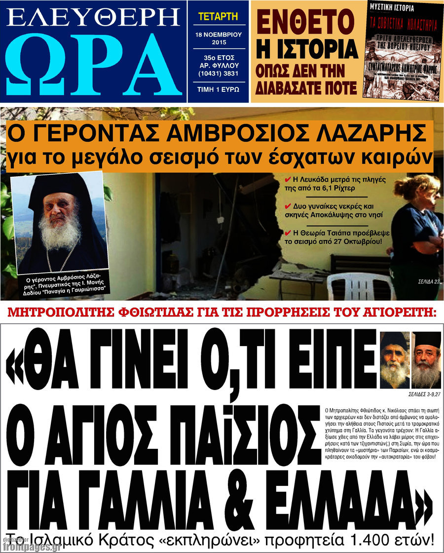 Μητροπολίτης Φθιώτιδας για τις προρρήσεις του Αγιορείτη:Θα γίνει ότι είπε ο Αγιος Παϊσιος για Γαλλιά & Ελλαδα