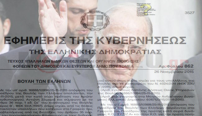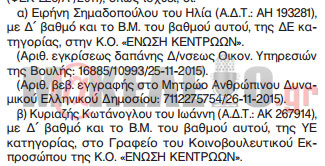 Ειδικότερα, όπως προκύπτει από σχετικό έγγραφο που αναρτήθηκε στην Κοινοβουλευτική Διαφάνεια, «διορίζονται, μετά την κατά νόμο πρόταση του προέδρου της Κ.Ο. ΕΝΩΣΗ ΚΕΝΤΡΩΩΝ, κ. Βασιλείου Λεβέντη, σε υπάρχουσες κενές οργανικές θέσεις μετακλητών υπαλλήλων οι: α) Ειρήνη Σημαδοπούλου του Ηλία, με Δ’ βαθμό και το Β.Μ. του βαθμού αυτού, της ΔΕ κατηγορίας, στην Κ.Ο. ΕΝΩΣΗ ΚΕΝΤΡΩΩΝ, και β) Κυριαζής Κωτάνογλου του Ιωάννη, με Δ’ βαθμό και το Β.Μ. του βαθμού αυτού, της ΥΕ κατηγορίας, στο γραφείο του κοινοβουλευτικού εκπροσώπου της Κ.Ο. ΕΝΩΣΗ ΚΕΝΤΡΩΩΝ»!