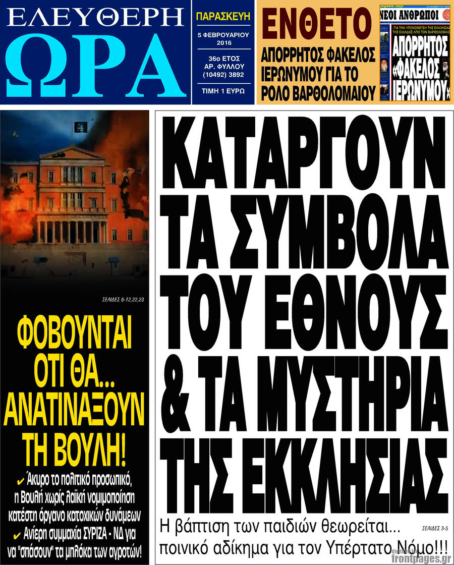 Καταργούν τα σύμβολα του έθνους & Τα μυστήρια της Εκκλησίας