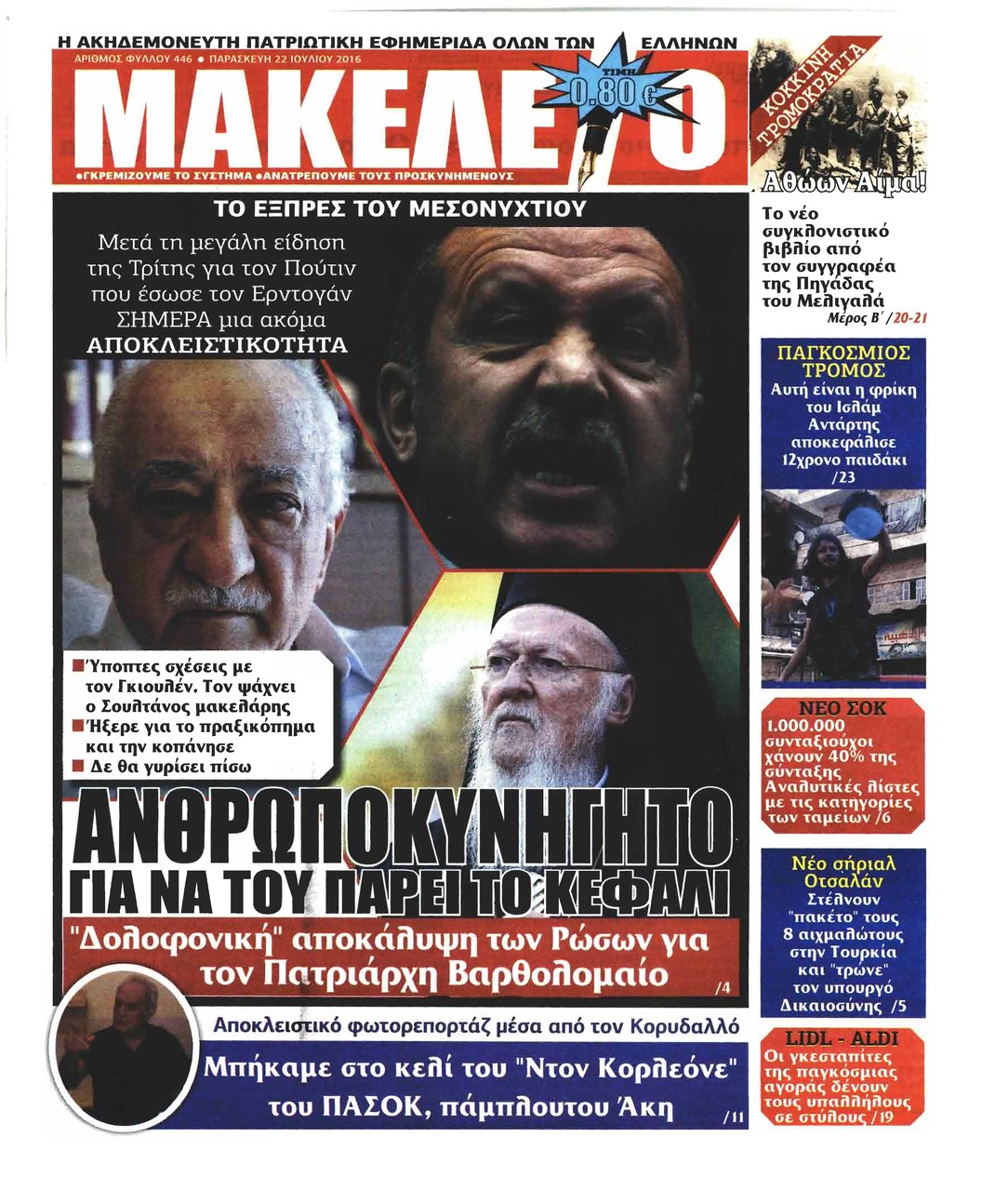 Την κοπάνησε από την Πόλη ο Βαρθολομαίος. Ανθρωποκυνηγητό για να του πάρουν το κεφάλι. Οι Ρώσοι “δίνουν στεγνά” τον Πατριάρχη ως φίλο του Γκιουλέν. To χάσαμε το Πατριαρχείο